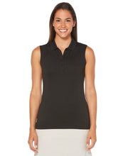 This classic solid-colored Callaway women's golf shirt is winning style. The sleeveless ladies' golf top features Opti Dri™ moisture-wicking technology to help keep you cool and dry. Stretch fabric allows for a full range of motion, while UPF 50 technology helps to block damaging UV rays from penetrating through to your skin.