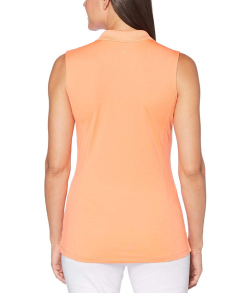 This classic solid-colored Callaway women's golf shirt is winning style. The sleeveless ladies' golf top features Opti Dri™ moisture-wicking technology to help keep you cool and dry. Stretch fabric allows for a full range of motion, while UPF 50 technology helps to block damaging UV rays from penetrating through to your skin.