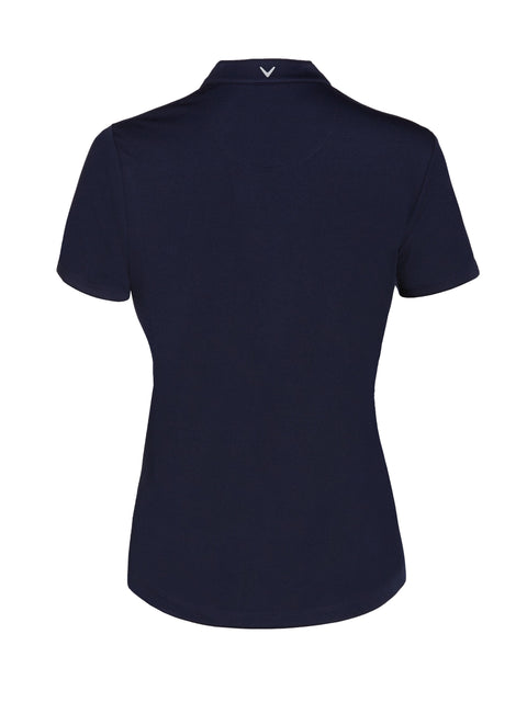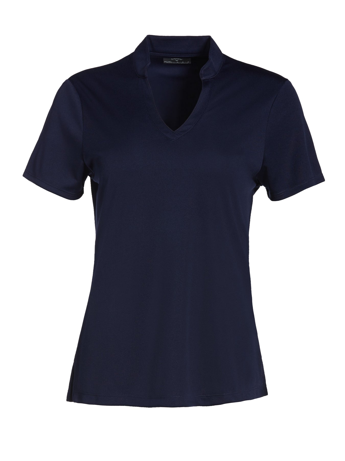 Easy to pair with almost any bottom, this sensible solid-colored V-neck tee from Callaway will quickly become one of your go-tos for the golf course. The women's golf shirt is made from interlock knit fabric, which offers a hint of stretch for an enhanced range of motion. Opti Dri™ moisture wicking technology built into our womens golf shirts pulls sweat away from the body for on-course comfort throughout your round. Built-in sun protection prevents harmful UV rays from penetrating the fabric of the golf top, helping to protect covered skin on sunny days spent outdoors.