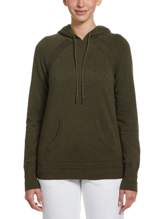 Heather Golf Hoodie with Pointelle Stitch Details (Industrial Grn Htr)