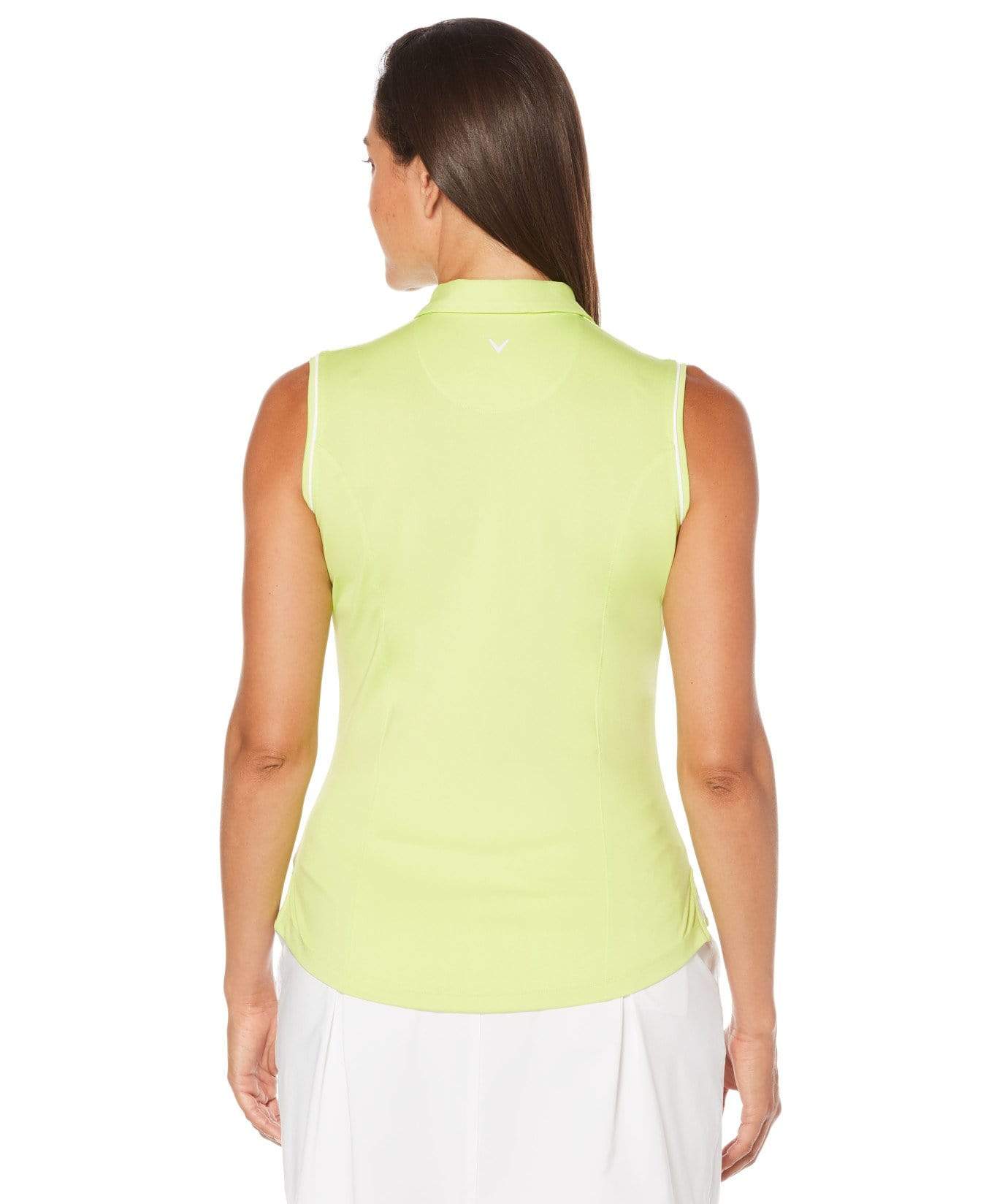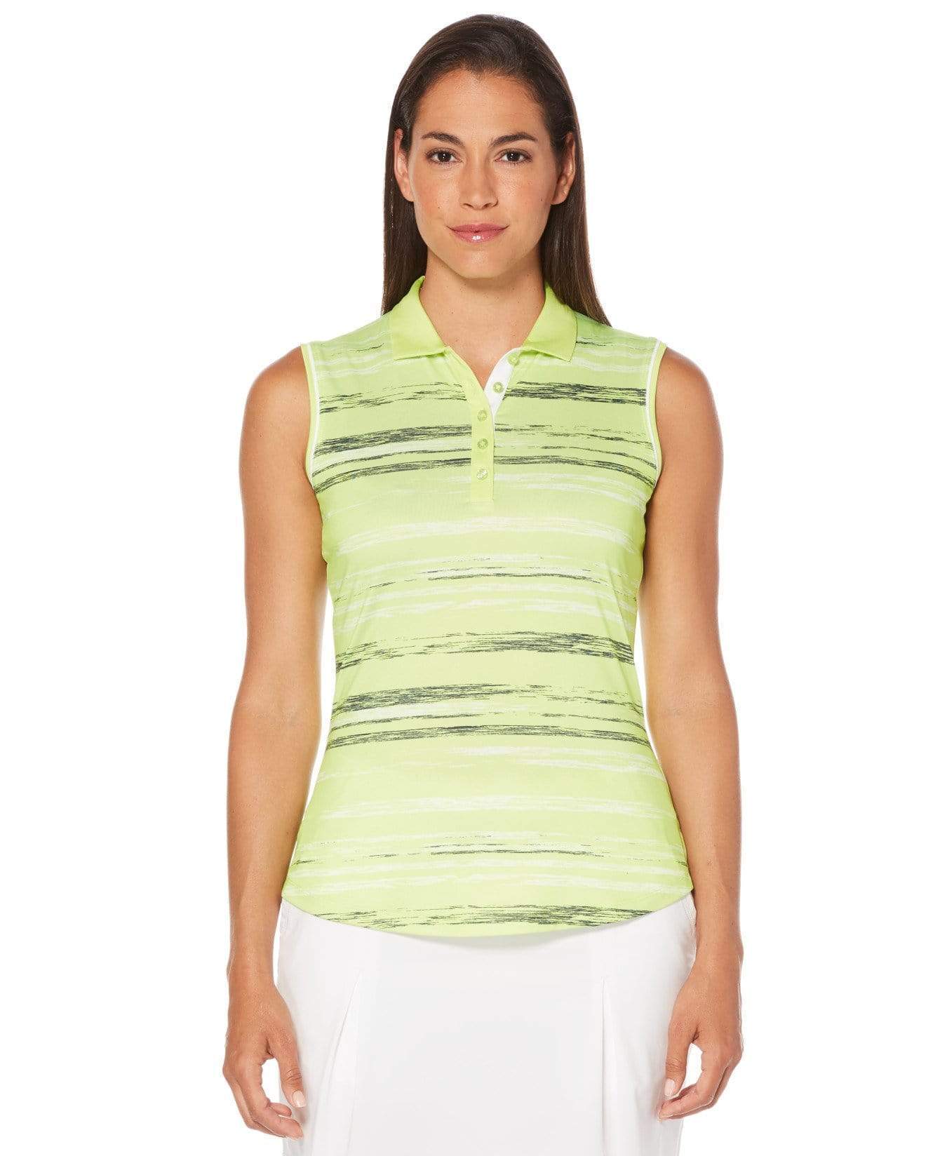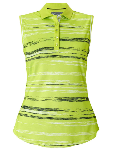 Set up a makeable birdie putt with a precision approach shot. And look great while you sink that putt while wearing this Callaway space dyed sleeveless polo. Subtle horizontal stripes cascade across the front panel of this polo, created by space dyed fabrication, which combines multiple colors into a single strand of fabric to produce a mottled look. Callaway's Opti Dri™ moisture wicking technology pulls sweat away from your body to keep you cool in the heat, stretch fabric is created by interwoven layers that ensure maximum range of motion and UPF 50 provides superior protection by blocking the sun's harmful UV rays.