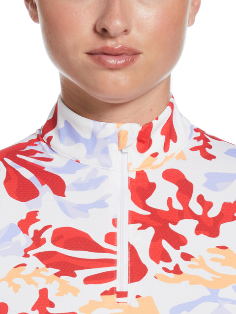 This Callaway women's long sleeve golf top makes a practical addition to your golf wear wardrobe. Stretch technology makes it easy to move in while sun protection blocks harsh UV rays during your game. This long sleeve golf shirt includes a quarter zipper closure, so you can customize your look while the summer floral print adds stylish flair.