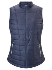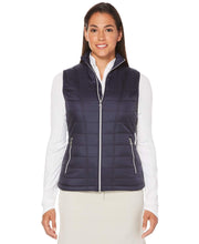 Take more club when the wind picks up, and put on this Callaway mixed media quilted golf vest. Rectangular quilting is sewed on the front and back and a two-way zipper closure allows you to zip from the bottom and top. Callaway's insulated thermal fabric creates a barrier between you and cold weather.