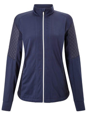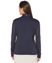 Take more club when the wind picks up, and put on this Callaway mixed media quilted golf jacket. Diamond-shaped quilting is sewed on the sides and upper sleeves and a two-way zipper closure allows you to zip from the bottom and top. Callaway's insulated thermal fabric creates a barrier between you and cold weather.