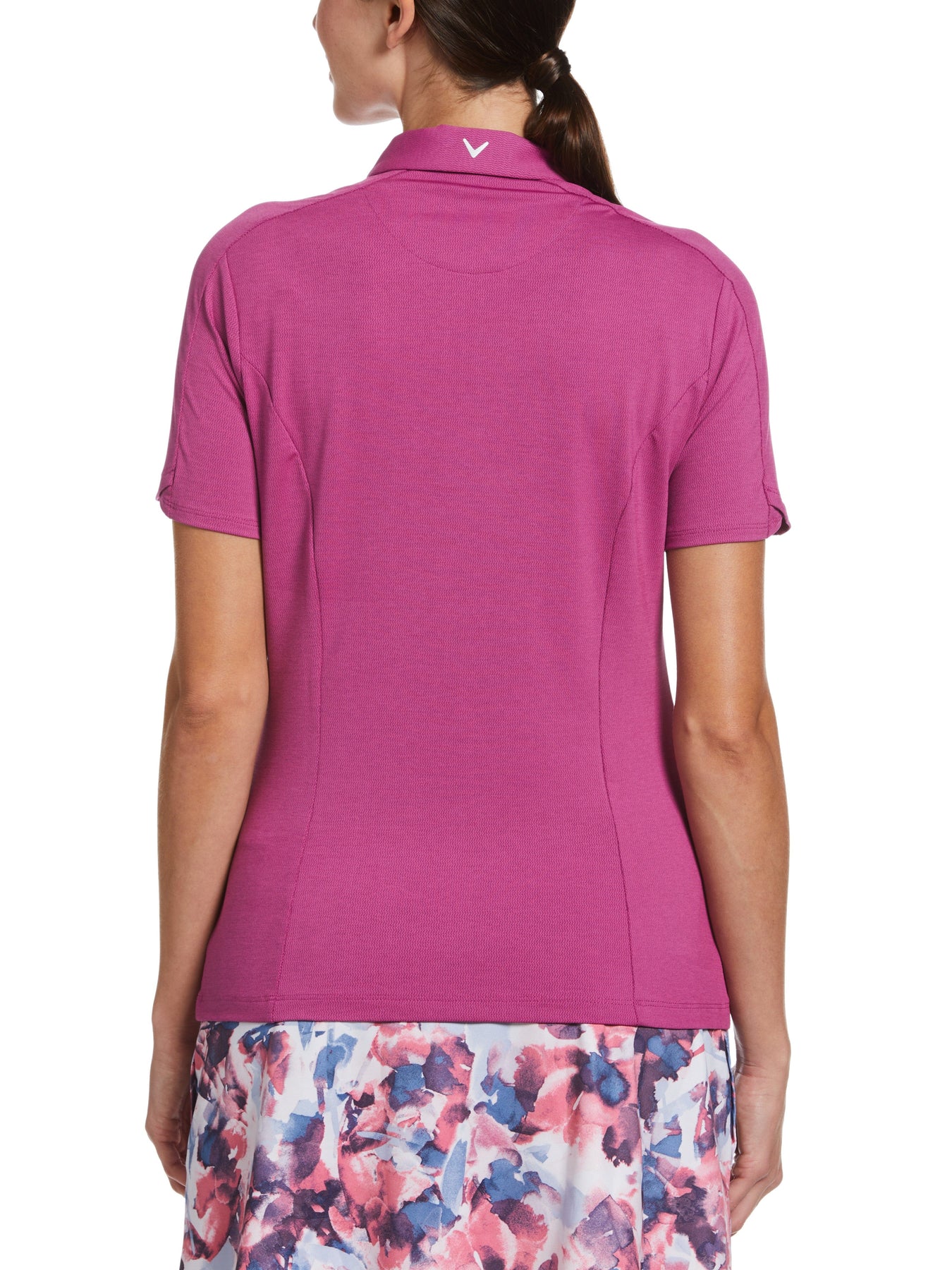 Equipped with cooling and Opti-Dri moisture-wicking technology to help you stay cool and dry, this Callaway women’s golf shirt will quickly become a staple of your athletic wardrobe. Stretch fabric provides an exceptional range of motion, while sun protection fabric has you covered as you navigate the course. The versatile heathered fabric easily complements a wide range of bottoms and a quarter-zip closure allows for easy on and off.