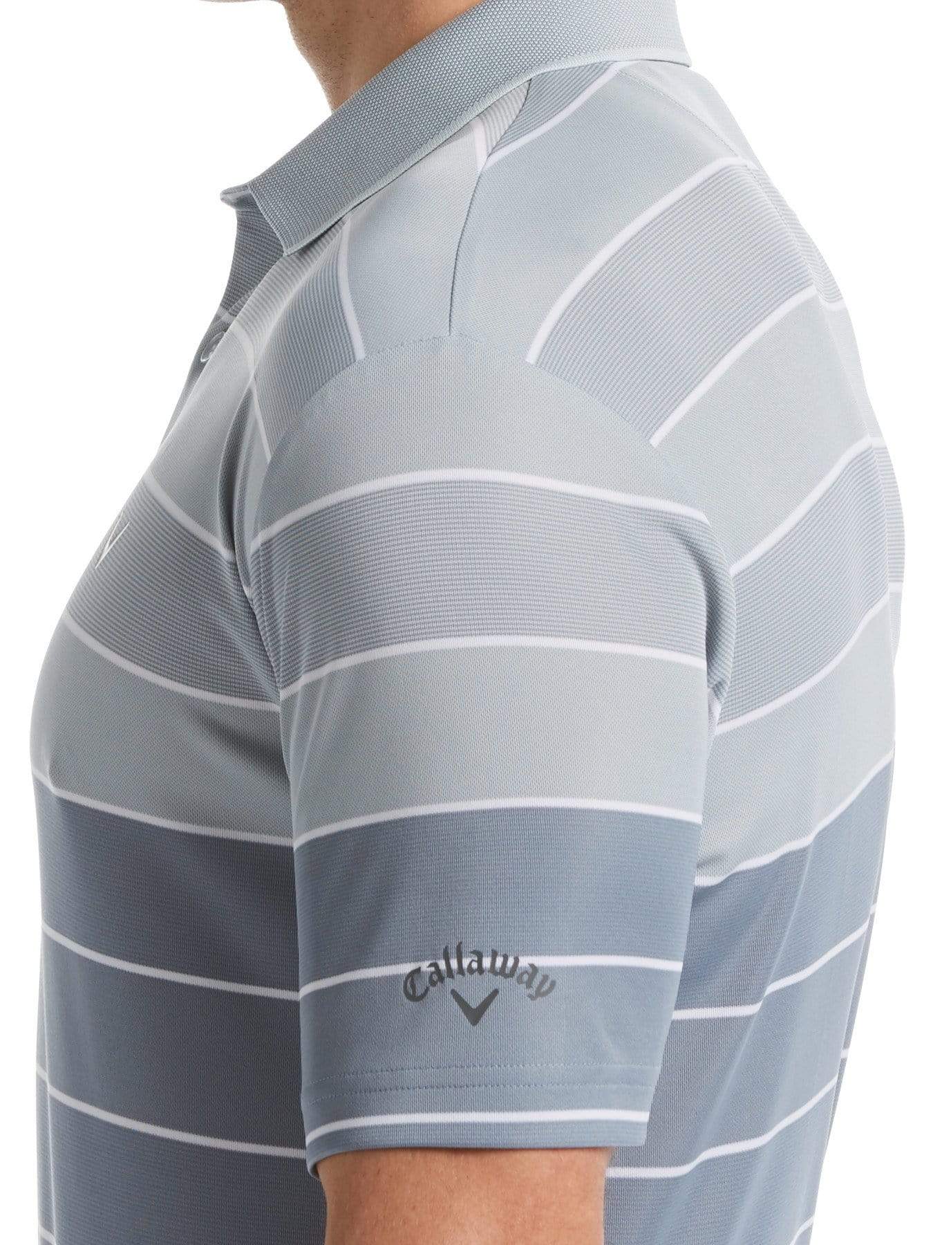 A yarn-dyed engineered Oxford stripe print brings dimension to this classic Callaway golf polo. Crafted for both performance and style, stretch fabric moves with you for a sweet swing every time. Moisture-wicking technology helps keep you cool and dry. A three-button placket and ribbed collar complete the handsome men's golf shirt.