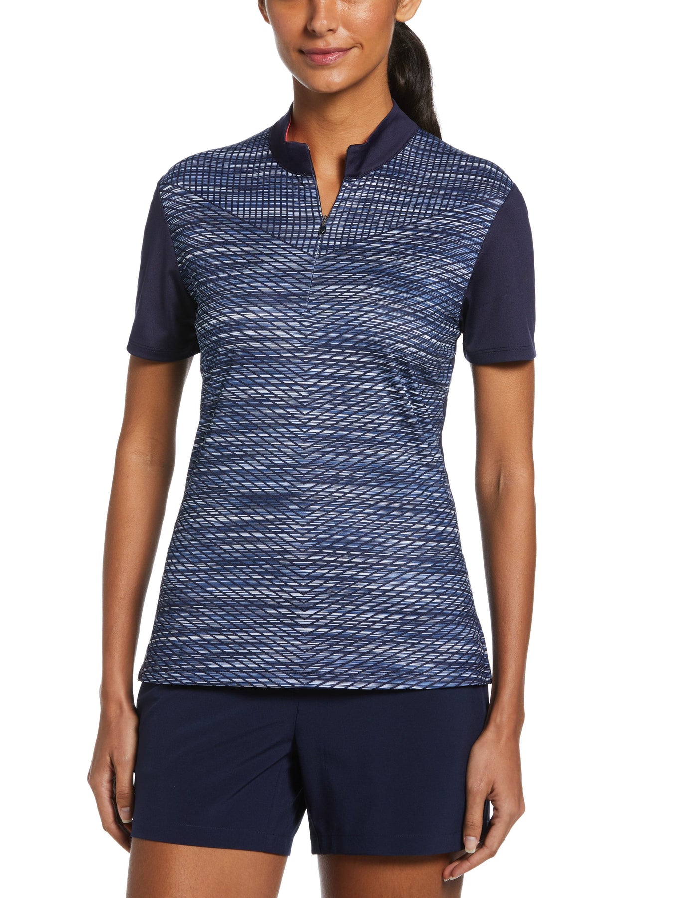 Womens Zip Mock Space-Dye Chevron Print Golf Polo